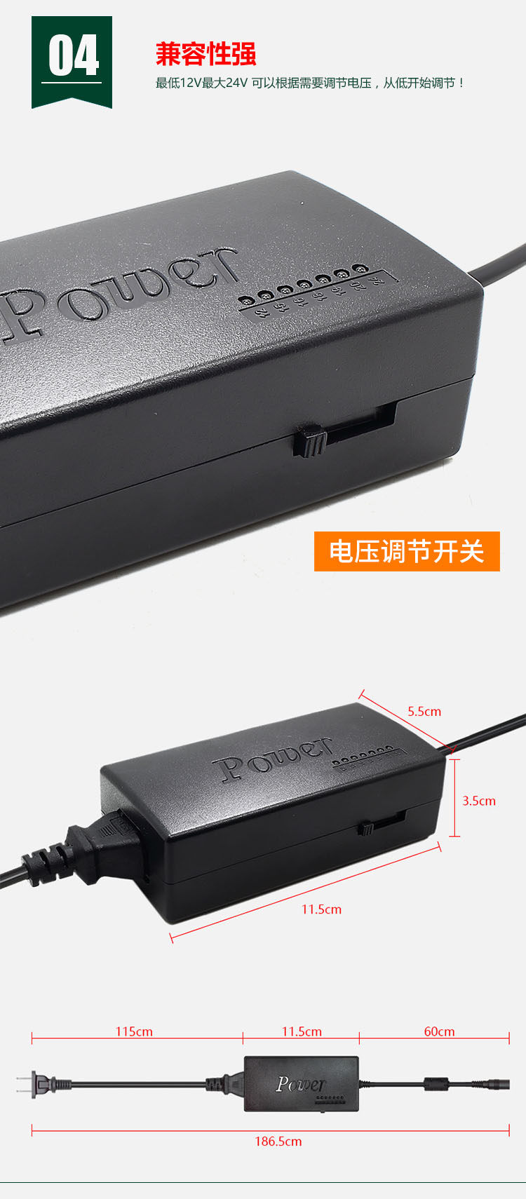 | Размер | 11,5 см*ширина 5,5 см*Высота 3,5 см, входная линия длиной 115 см, длина выходной линии составляет 60 см. |