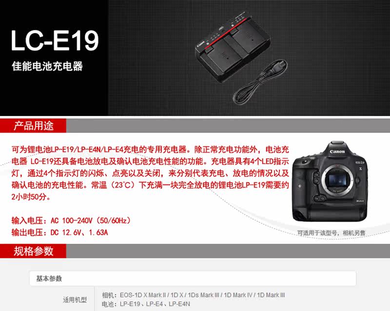 Национальный банк вне акций Canon/Canon LC-E19 Original Charger LP-E19 E4N 1DX Markii