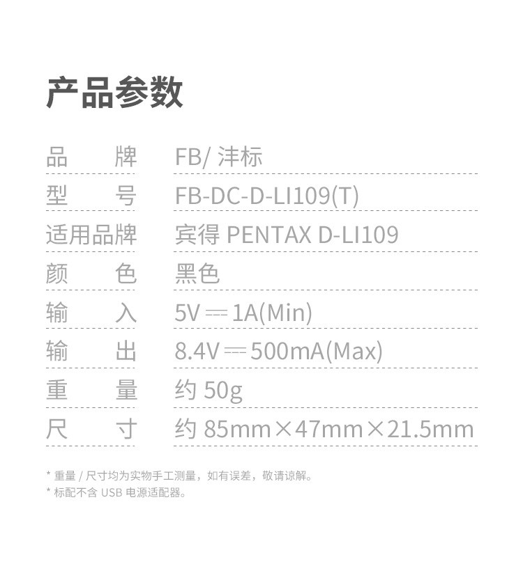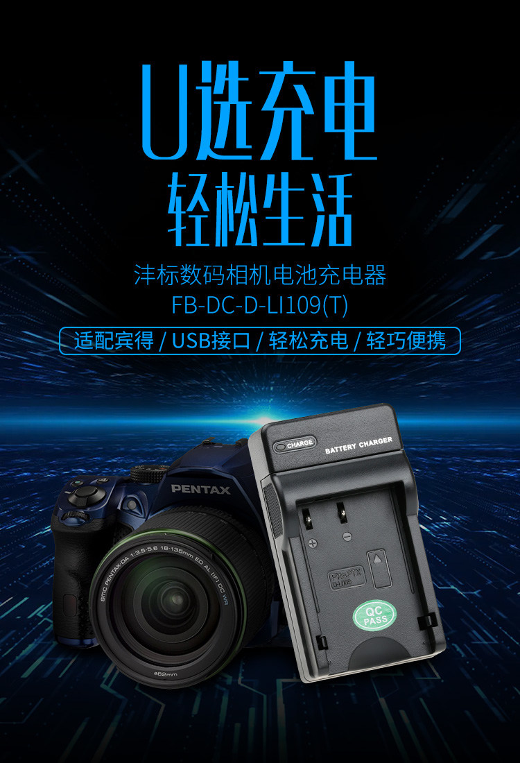 Fengbiao D-Li109 Зарядное устройство подходит для Pentax KP KS1 KS2 K50 K30 KR K100 Батарея камеры