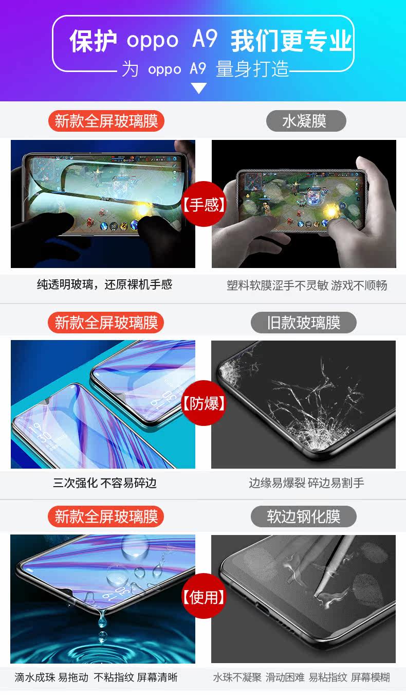 OPPOA9 Memded Film Oppoa9 Anti -Blue Light Light Pull -Escreen Lopage Защита глаз A9x Anti -FingerPrint High -Definition Оригинальный мобильный телефон OPPO Полный белый край без белого края анти -падения защита от стекла пленка жесткость