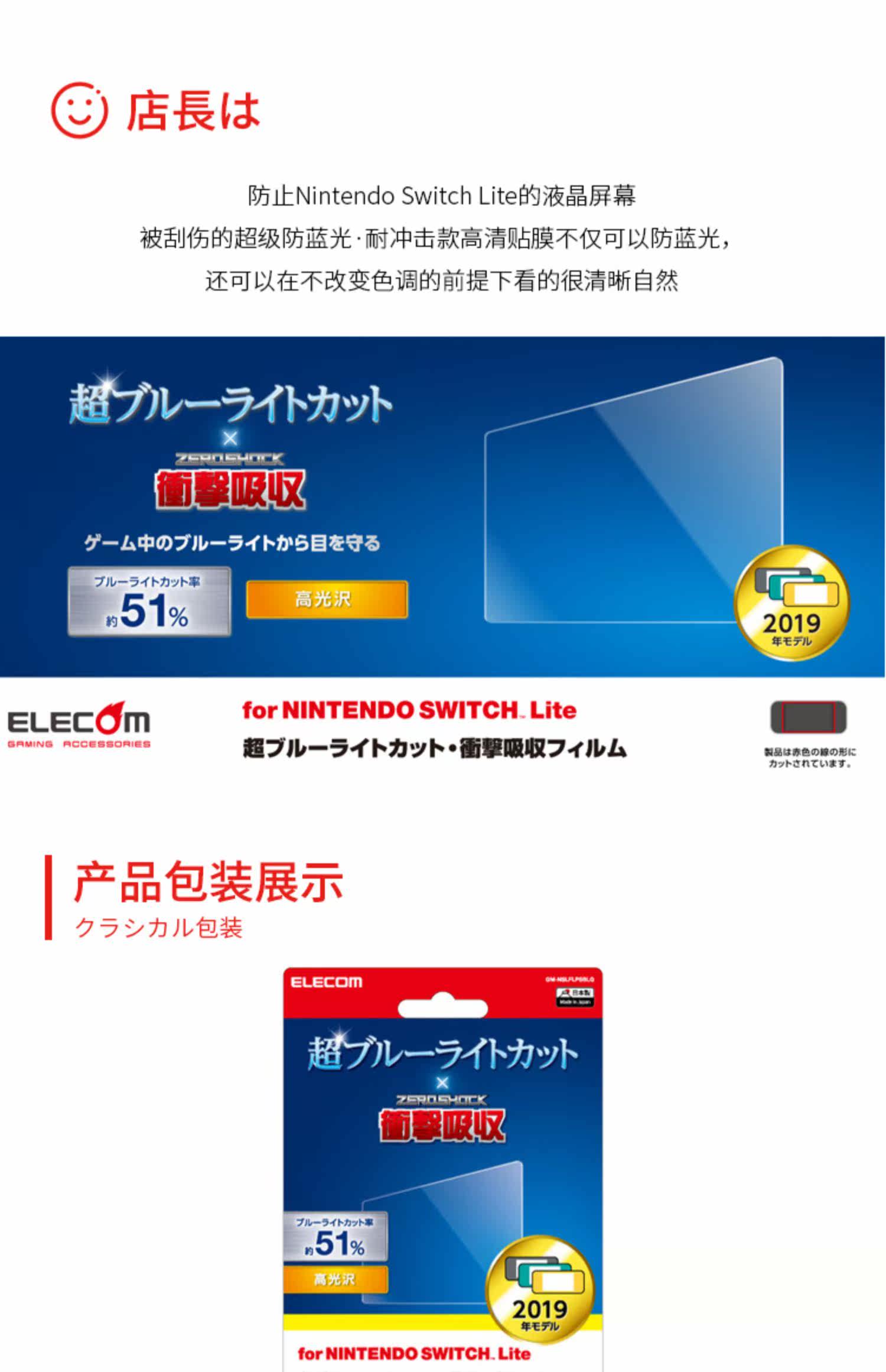 Японская Jiulie Switch Lite Protective Film Nintendo Nintendo Anti -Ippact High -Definition Anti -Blue Light