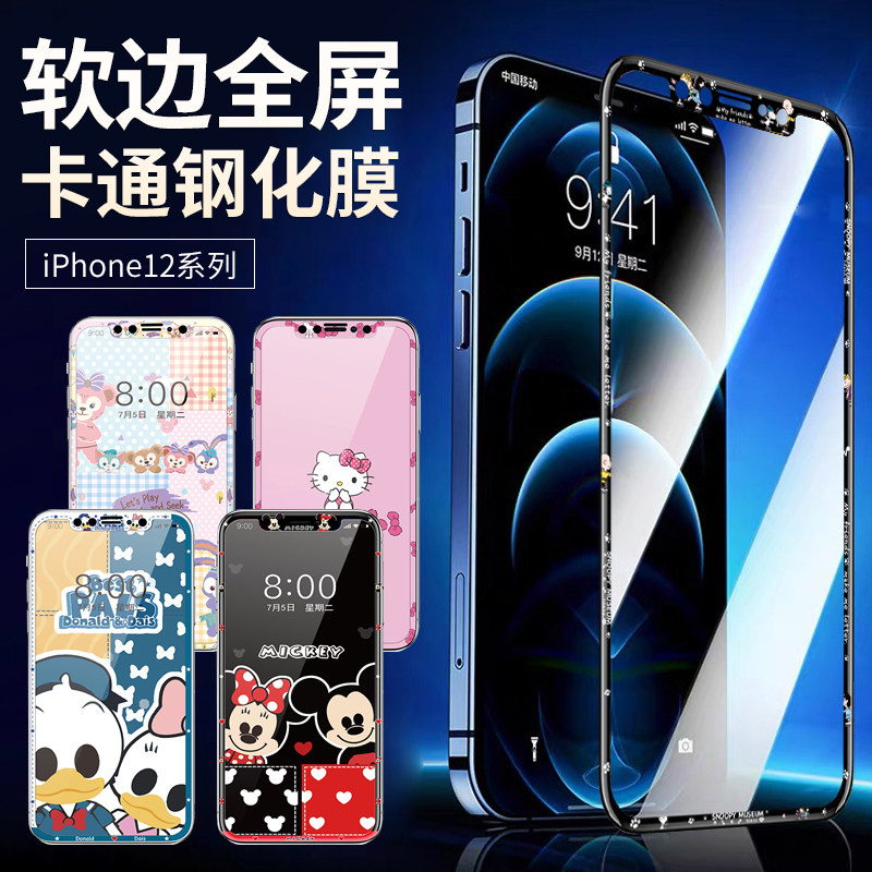 Apple iPhone14 цветная пленка с героями мультфильмов 13ProMax полноэкранная 12 pro взрывозащищенная 11 закаленная пленка XR пленка с мягкими краями