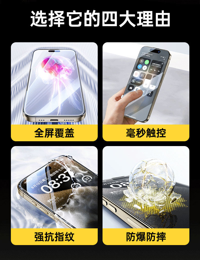 [Оригинальное ощущение телефона] Pinsheng подходит для Apple 𬞟Guo 16 закаленная пленка iPhone 13/15 защитная пленка для мобильного телефона 14pro HD пленка 16promax новая защитная пленка Corning 12 от падения ip полноэкранное покрытие pm