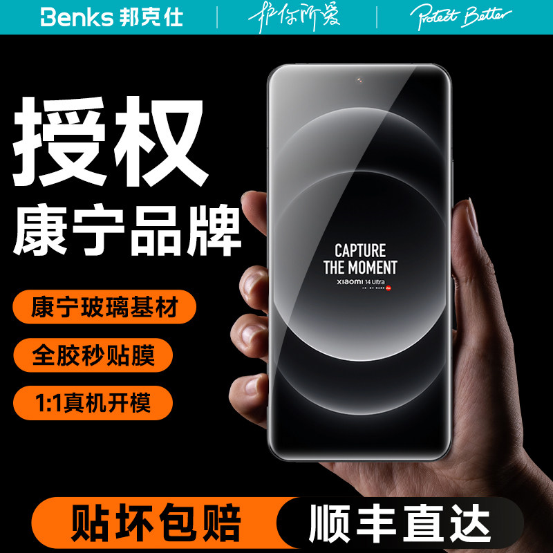 [Официальный бренд Corning] Benks подходит для Xiaomi 14Ultra, полностью клеевая закаленная пленка Xiaomi14Pro, защитная пленка для мобильного телефона, защита от отпечатков пальцев, полноэкранное покрытие высокой четкости, защита от пыли, склад, защита от падения