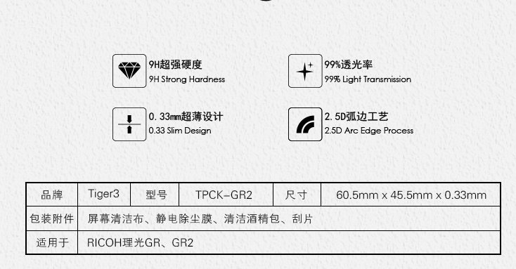 Ri Guang GR, GR2 Выделенная смягченная стеклянная пленка с бриллиантовой пленкой 1: 1 Fit Full -Screen Lopage