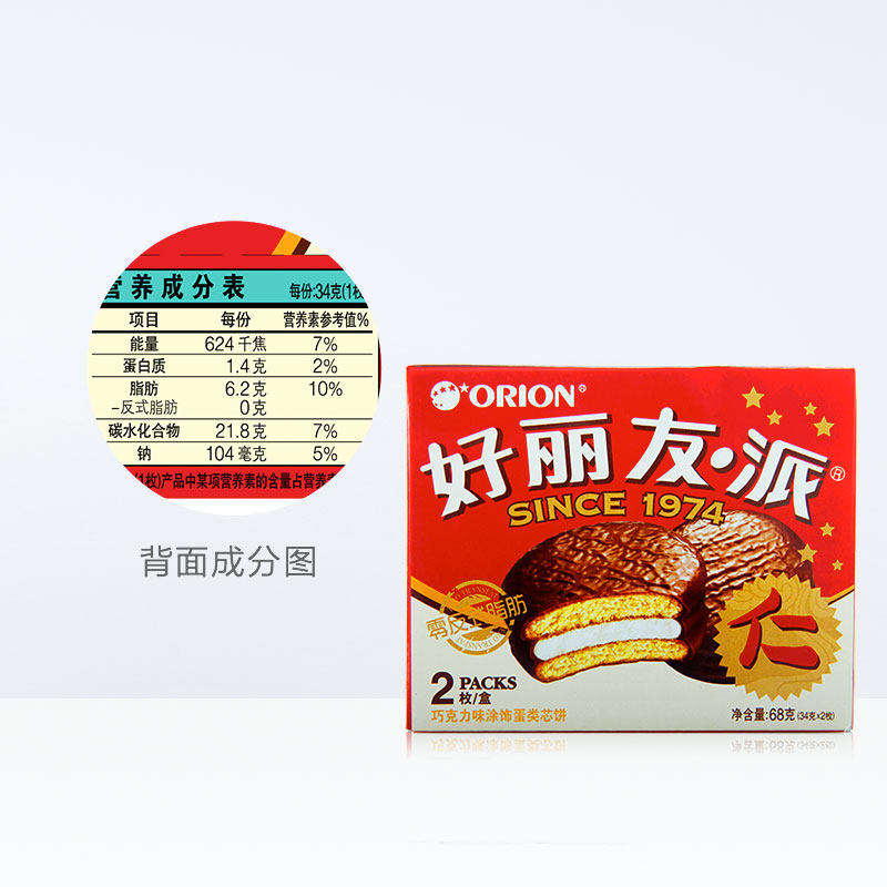 Hao Liyou Chocolate Pie 2 68G Случай -закусочный торт.