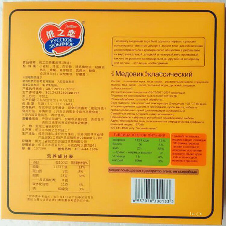 Российский российский аромат тирамису медовый торт настолько популярен, в основном из -за следующих уникальных навыков производства: