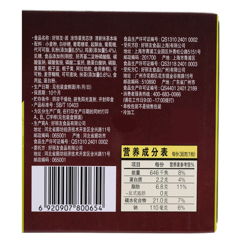 Hao Liyou Fresh Matthel Ben вкусует 6 штук 216 г Новые закуски, новая и старая упаковка альтернативная
