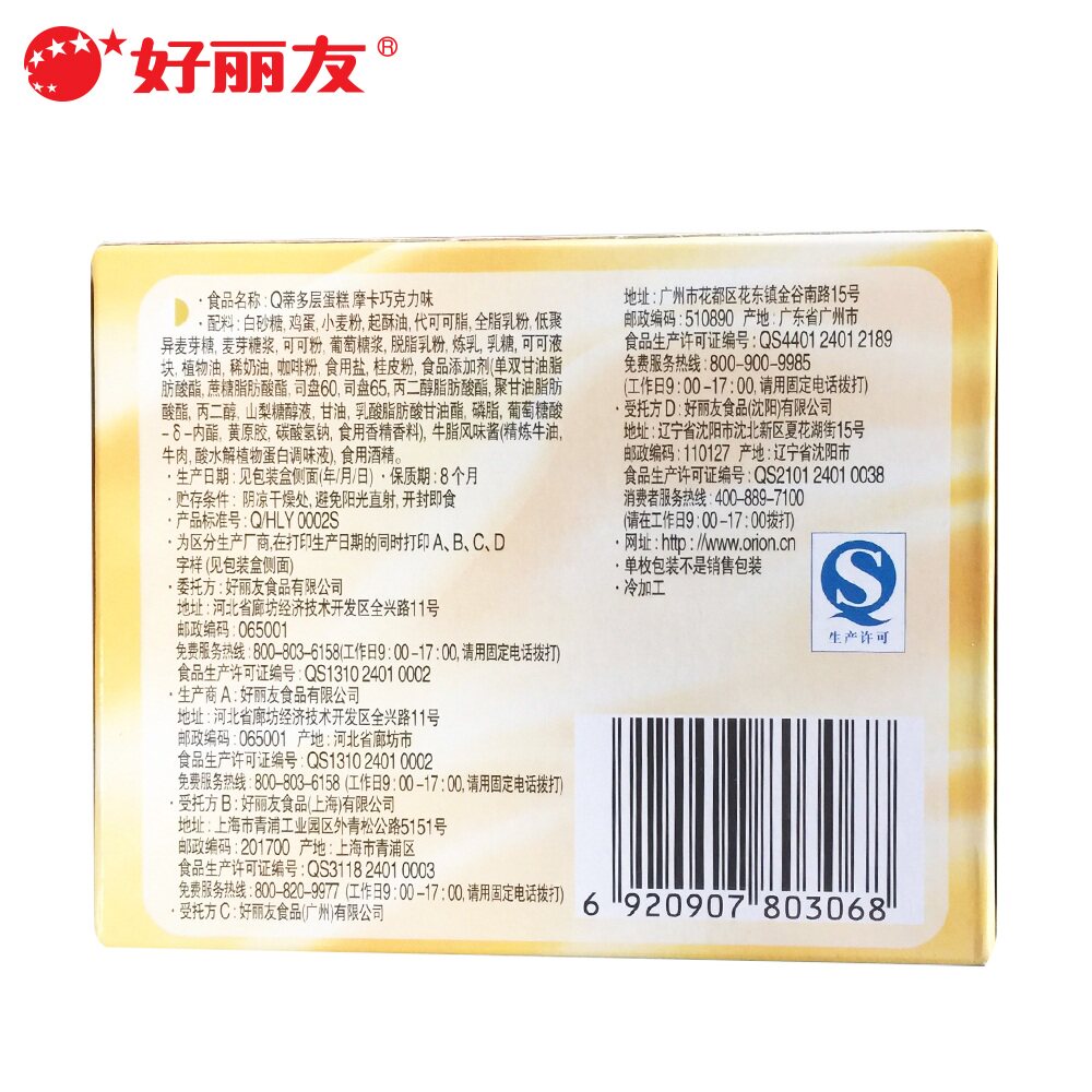【Произведено в марте-апреле】 hao liyou Q Timoka шоколадный аромат 2 штуки 56 г*12 коробок*4 средняя коробка целая коробка торт