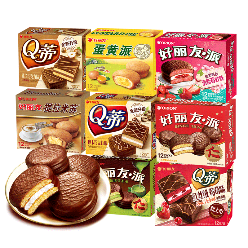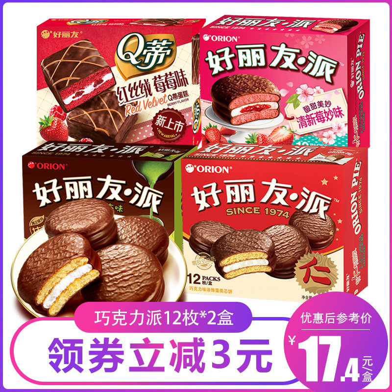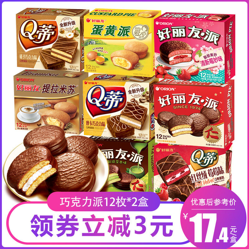 Hao Liyou Chocolate Pie 12*2 коробки с двойным матчамису Qi какао Красное бархатное яичное желток школы