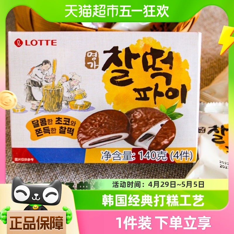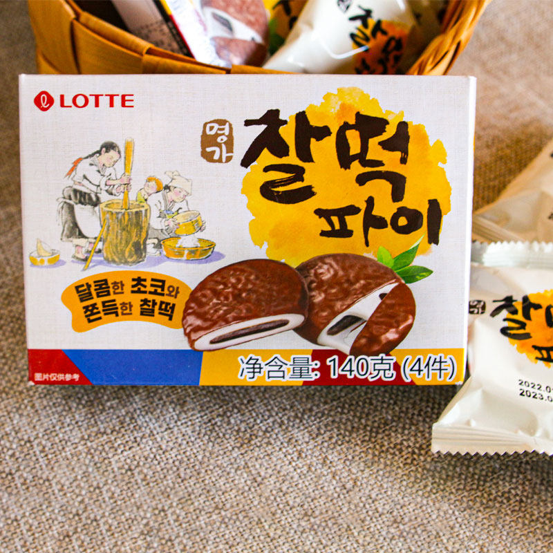 Корейский импортный шоколадный пирог Lotte, сэндвич с клейким рисом, моти, хлеб, закуски на завтрак, 140 г, 1 шт.