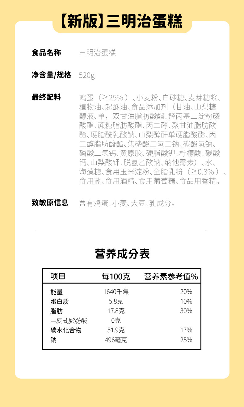 盼盼 Сэндвич торт 520G*1 коробка завтрака с полной коробкой сэндвич с бутерброд
