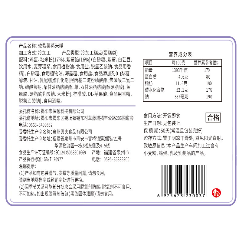 Гонконг Ронг Тан Теплый мягкий фиолетовый картофельный пареный рисовый пирог 420 г