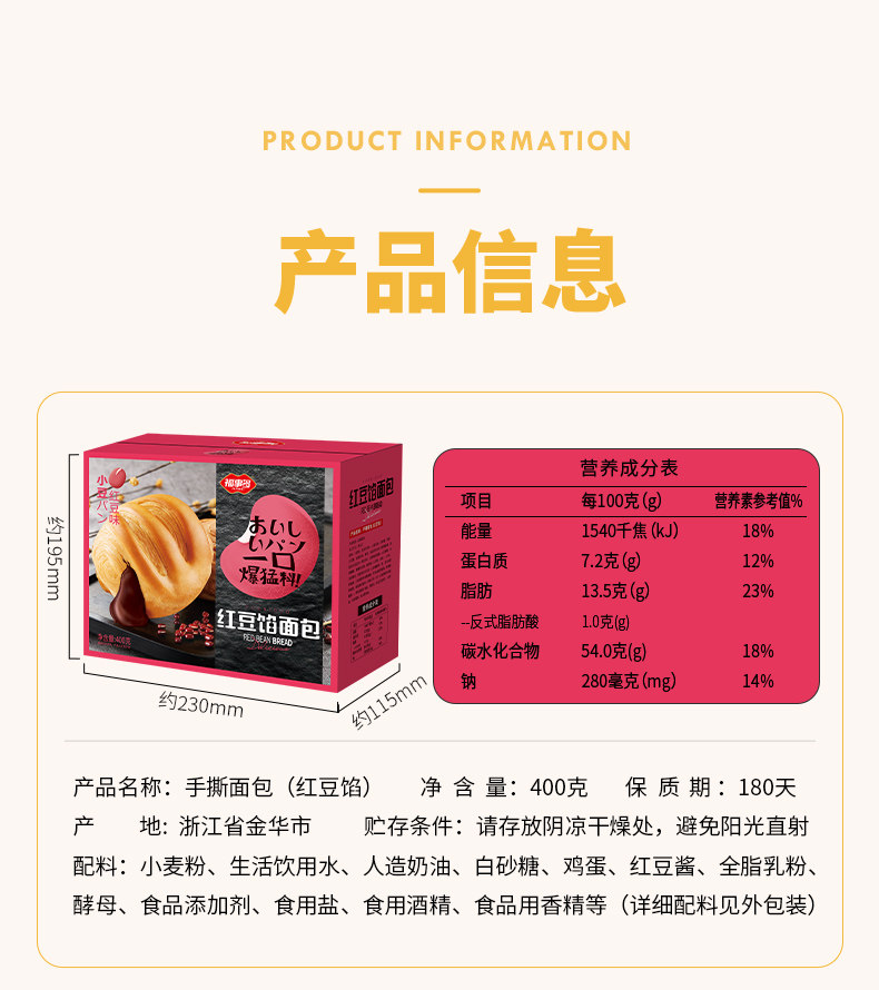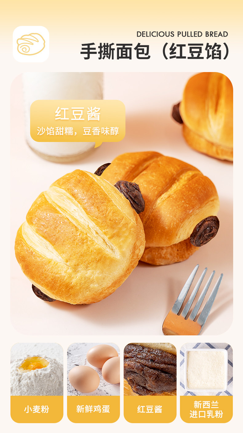 Бесплатная доставка, начинка из красной фасоли Fushiduo, хлеб с ручным хлебом 400 г*1 коробка утренней и вечерней замены пирожки, повседневные закуски и выпечка.