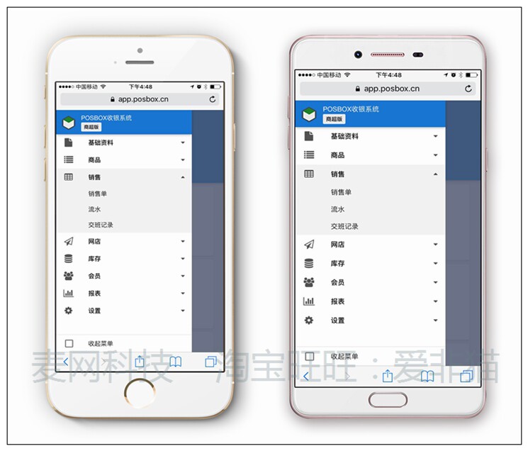 Posbox Cash Register Cash Register Кассовый регистр программного обеспечения для мобильного телефона Управление боковым управлением WeChat