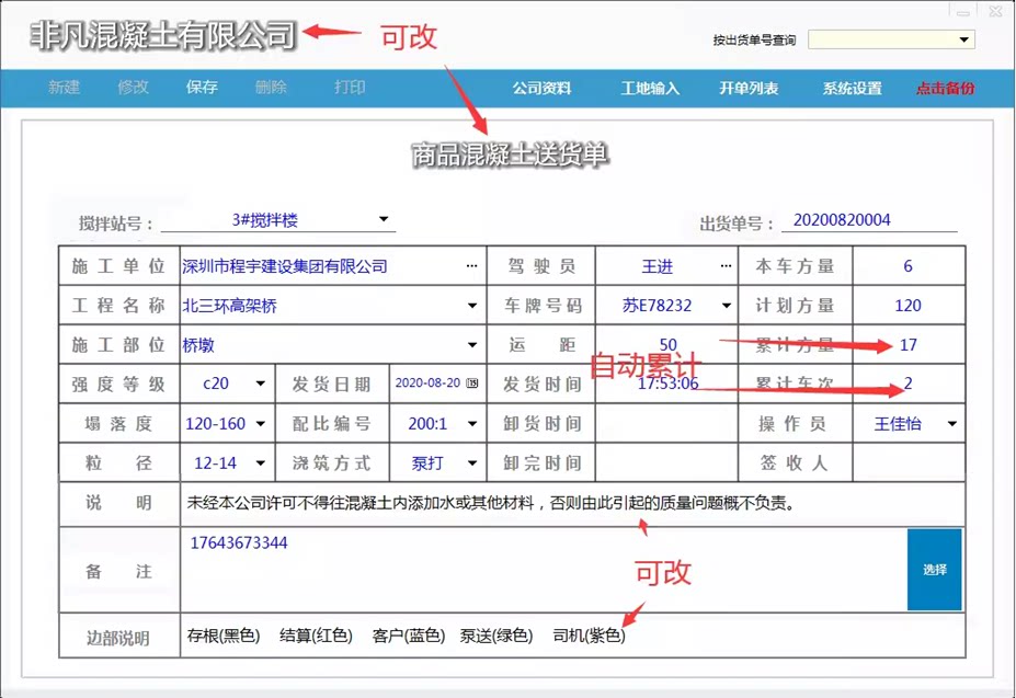 Список доставки бетона, набор поддержки, может быть настроен.Вы можете распечатать пустой связанный заказ,