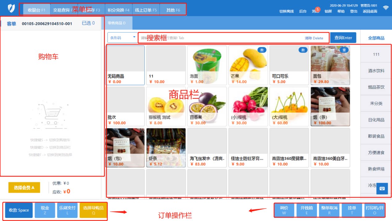 Supermarket Cashier Member System System Software Shodience Store Закуски, фрукты и овощи, фрукты и овощи, приготовленные коды, код сканирования, собирать кампанию и собирать деньги, матери и детская одежда новая