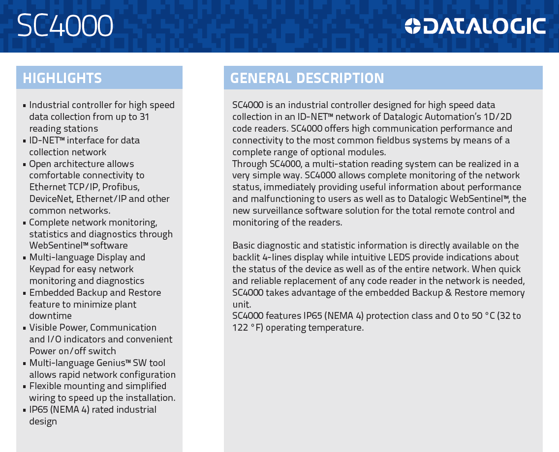 DataLogic SC4000 SC5000 Промышленного контроллера идентификатор идентификатор идентификатор высокоскоростного коллектора данных