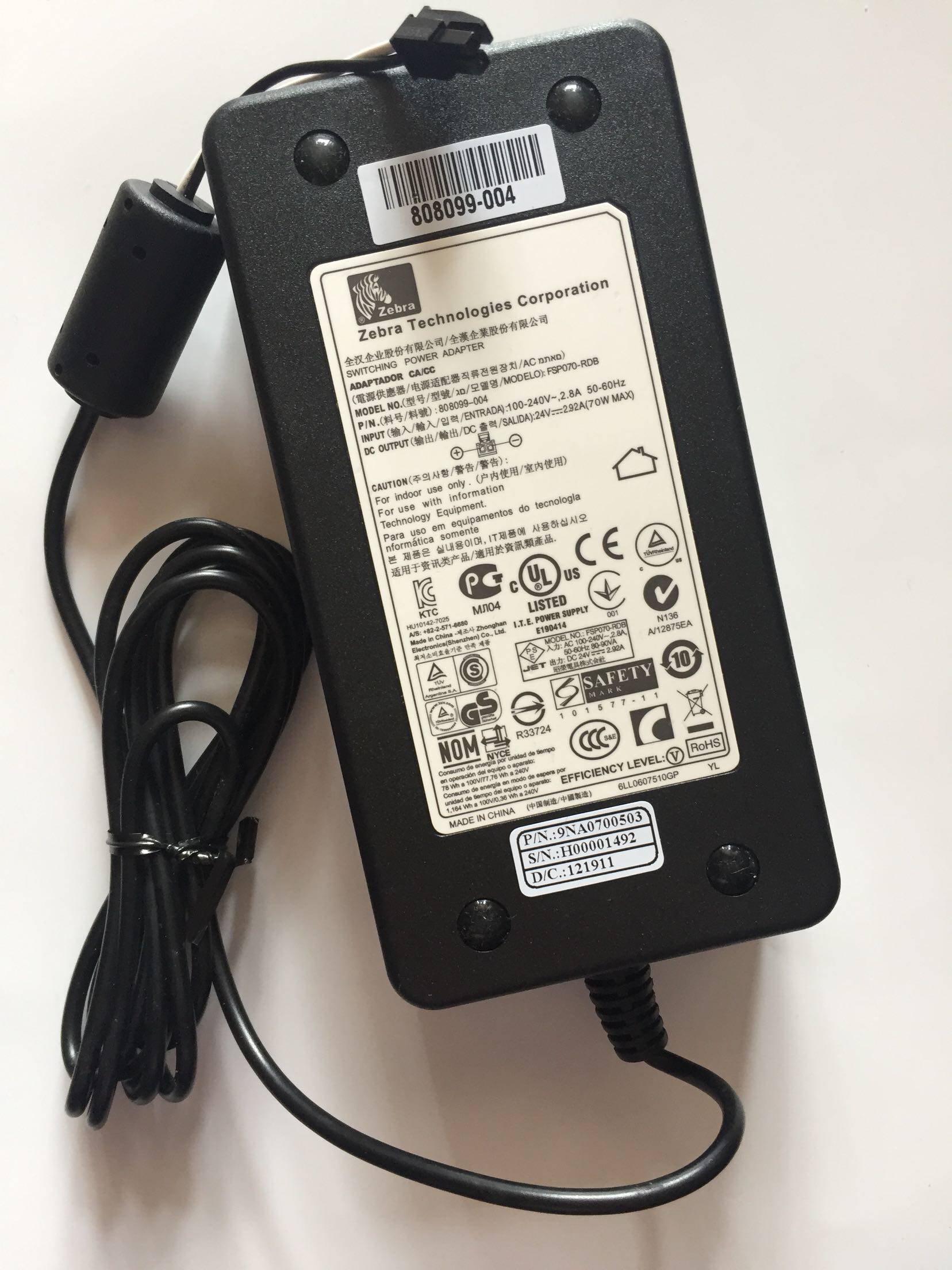 Новый оригинальный адаптер Zebra Power FSP070-RDBM 24V2,92A Принтер Zebra GX430T