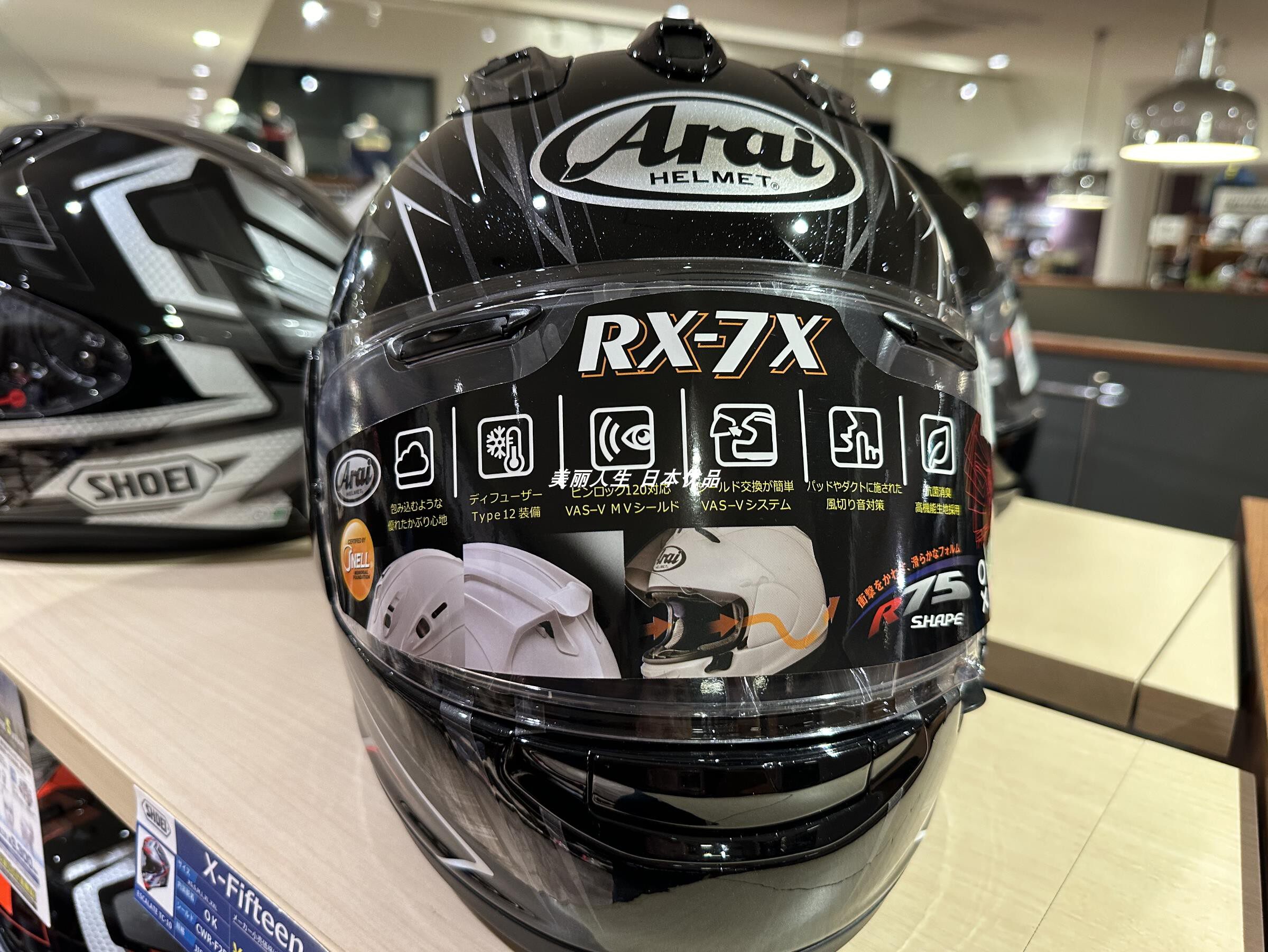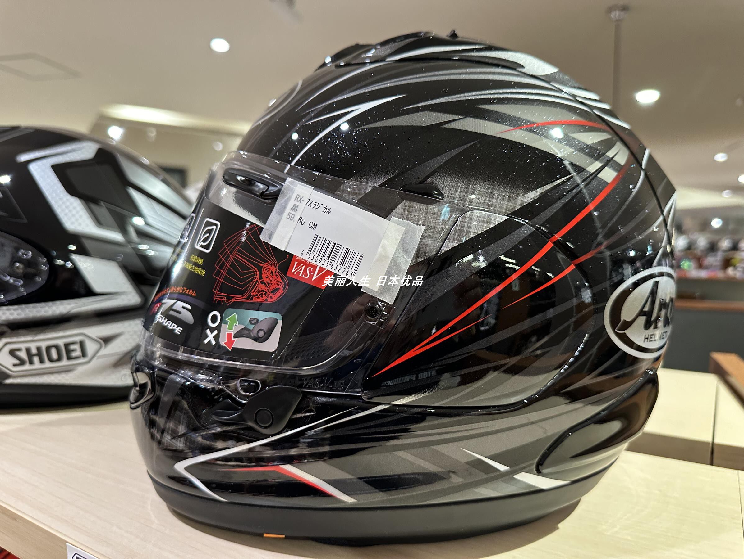 3. Оподасы японской локальной версии метода распознавания шлема: наклейки с линзами и наклейки на подкладок - японские, а в слева есть теги.