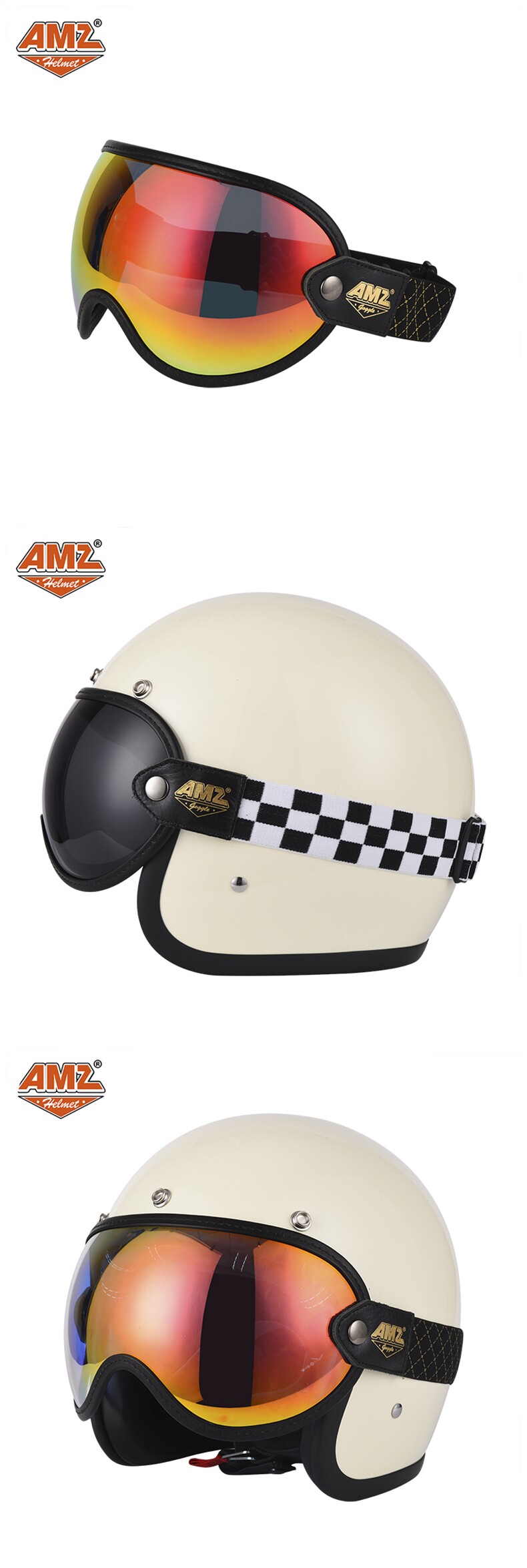 AMZ Полушлем, ретро шлем, защитные очки, объектив, ремень, 4