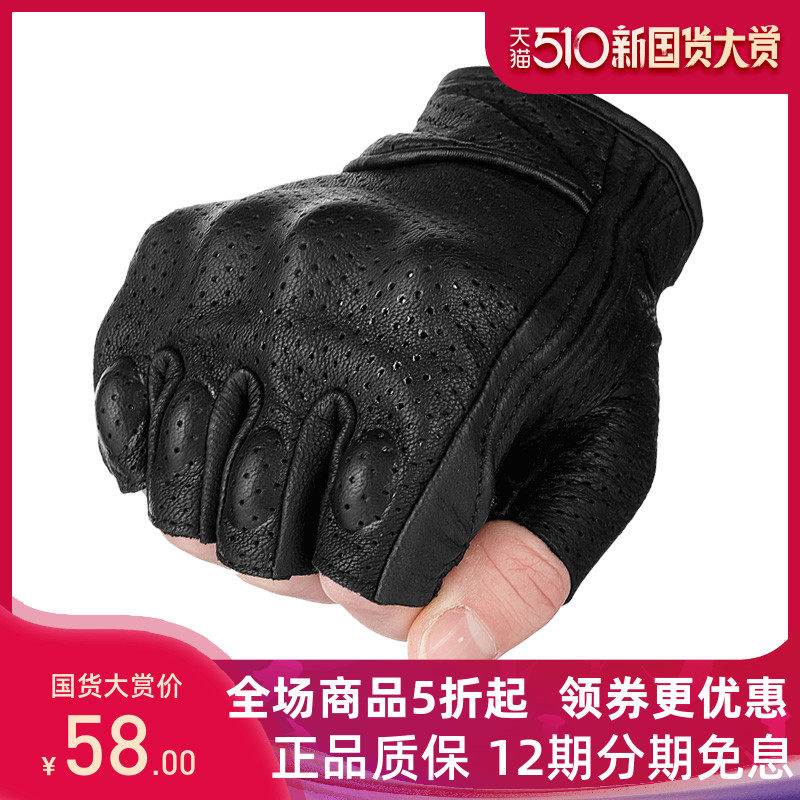 Летние перчатки из овчины, ретро дышащий гоночный автомобиль, из натуральной кожи, без пальцев, защита при падении