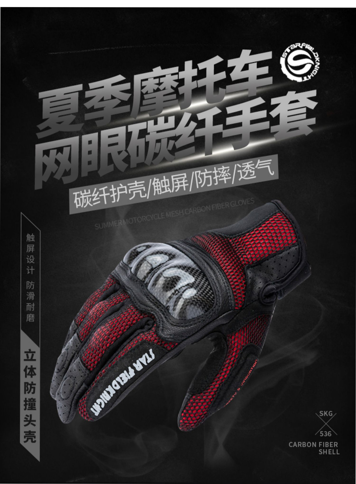 星空骑士 Летние дышащие перчатки подходит для мужчин и женщин из углеродного волокна, защита при падении