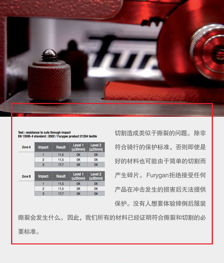 Фьюриганская одежда перемещается FuryganИсследования и разработкиЛабораторные испытания для укрепления устойчивости к разрыву и износу кожаных изделий.