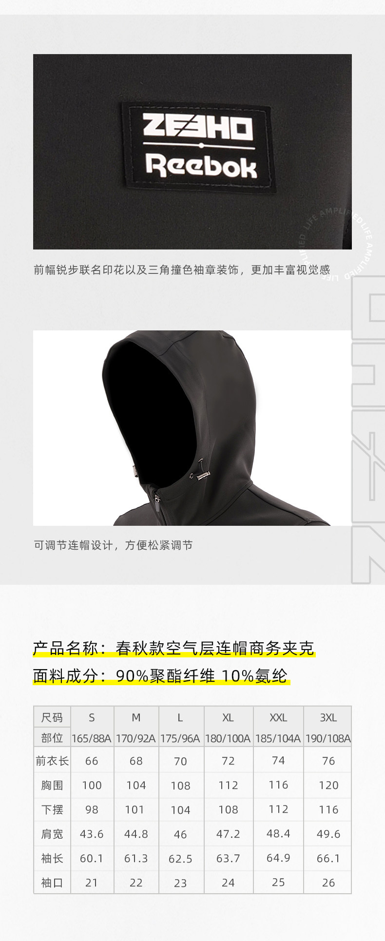 Reebok, дизайнерская осенняя куртка с капюшоном