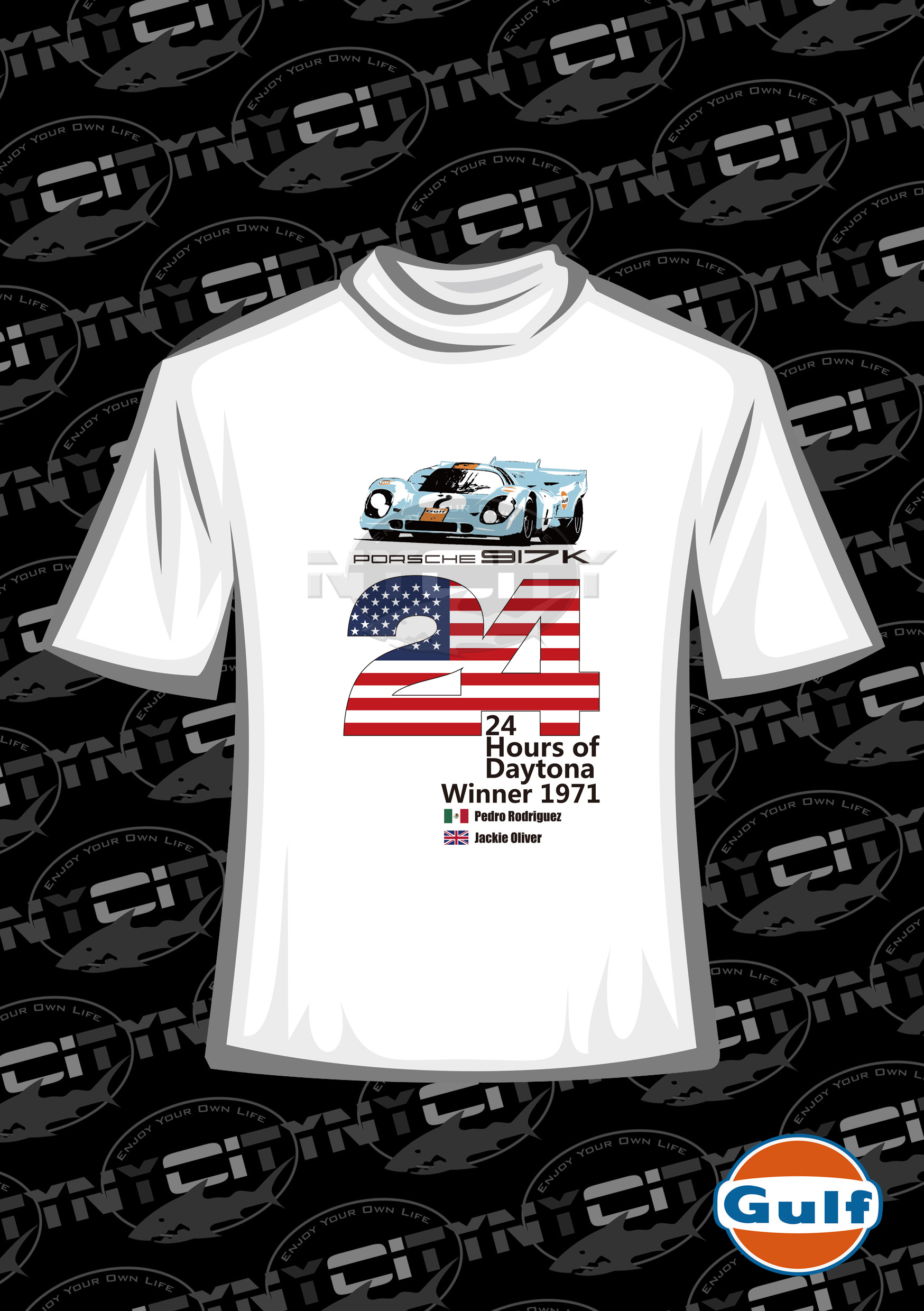 Porsche Gulf 917 Daytona 1971 Printing Racing T -Fork
