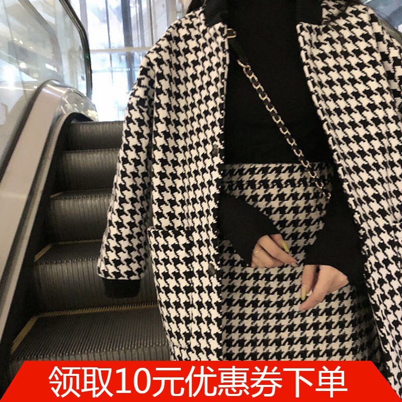 Ретро комплект, длинное стеганое шерстяное пальто, юбка, в стиле Шанель, средней длины, высокая талия