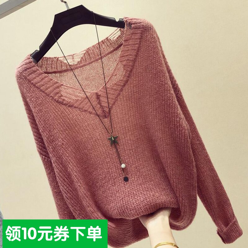 2019 осенний новый свободный свитер с длинными рукавами, женский тонкий свитер в ленивом стиле, шикарная блузка с полым верхом