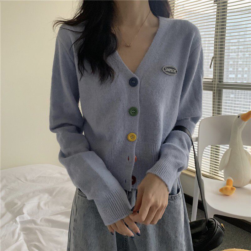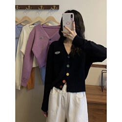 Демисезонный короткий лонгслив, свитер, куртка, трикотажный кардиган, 2020, в корейском стиле, свободный крой, V-образный вырез