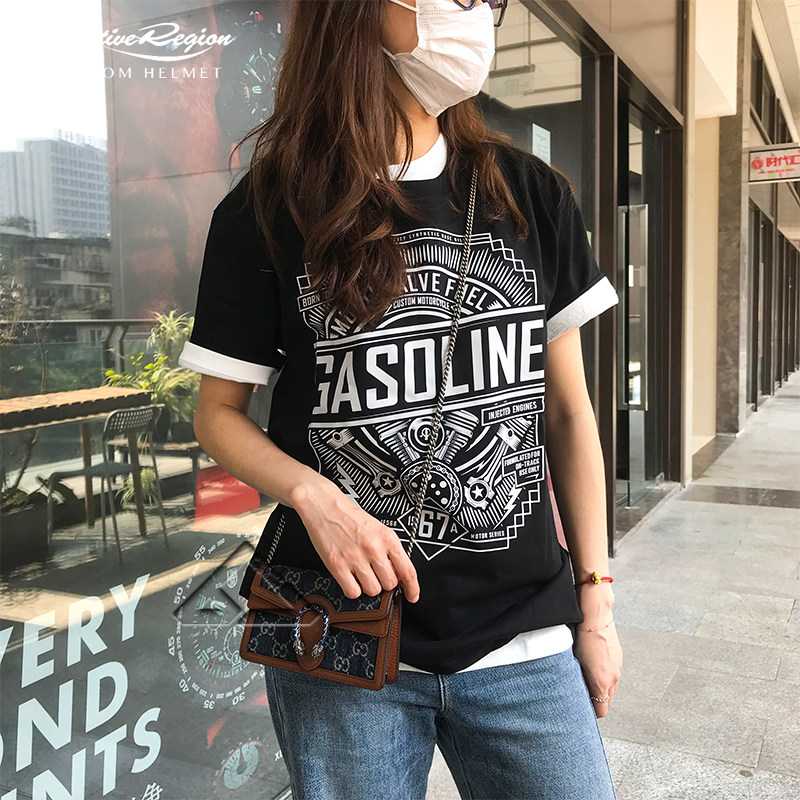 Трендовая ретро хлопковая футболка с коротким рукавом