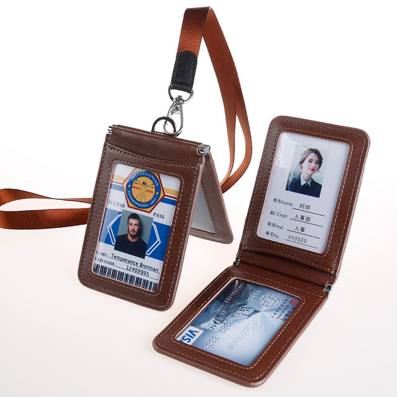Складной бейджик, картхолдер подходит для мужчин и женщин, универсальный ремешок, из натуральной кожи