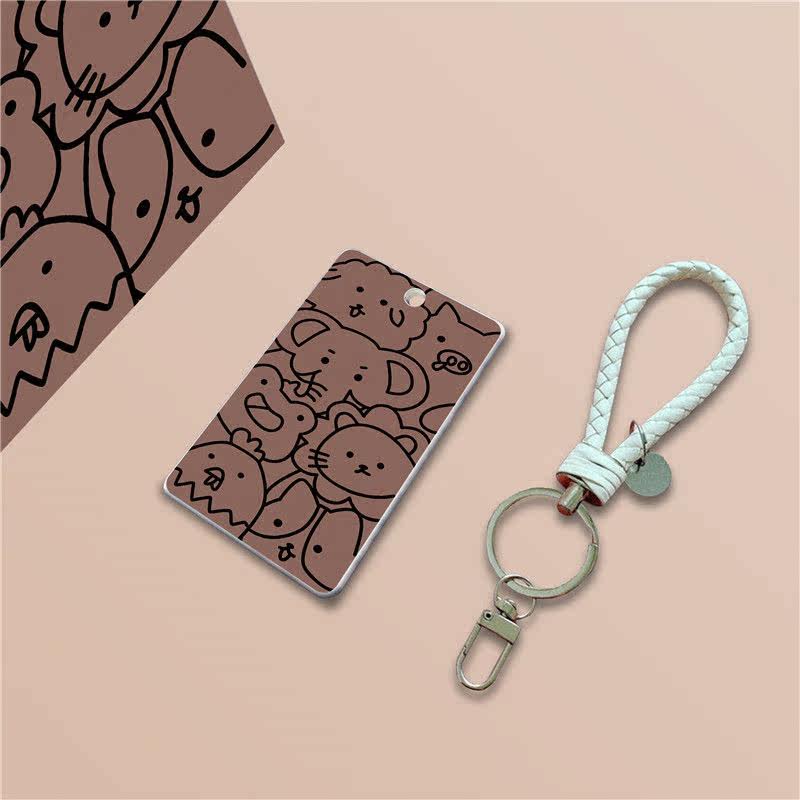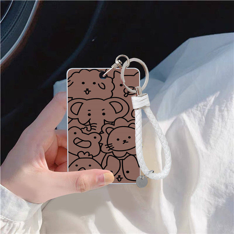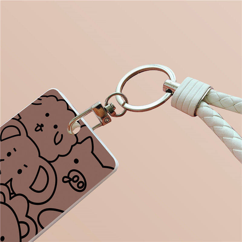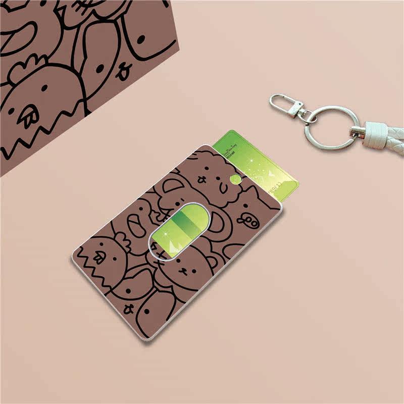 Коричневый милый чехол для проездного, защитный чехол, брелок, ремешок, с медвежатами