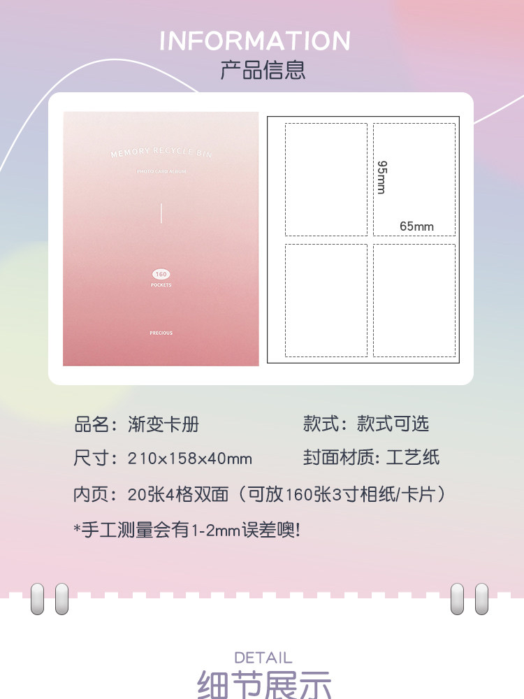 | Цвет: | Градиентный порошок (3 дюйма 160 карт), Градиент зеленый (3 дюйма 160 карт), Градиент светло -голубой (3 дюйма 160 карт), Градиент темно -синий (3 дюйма 160 карт) |
