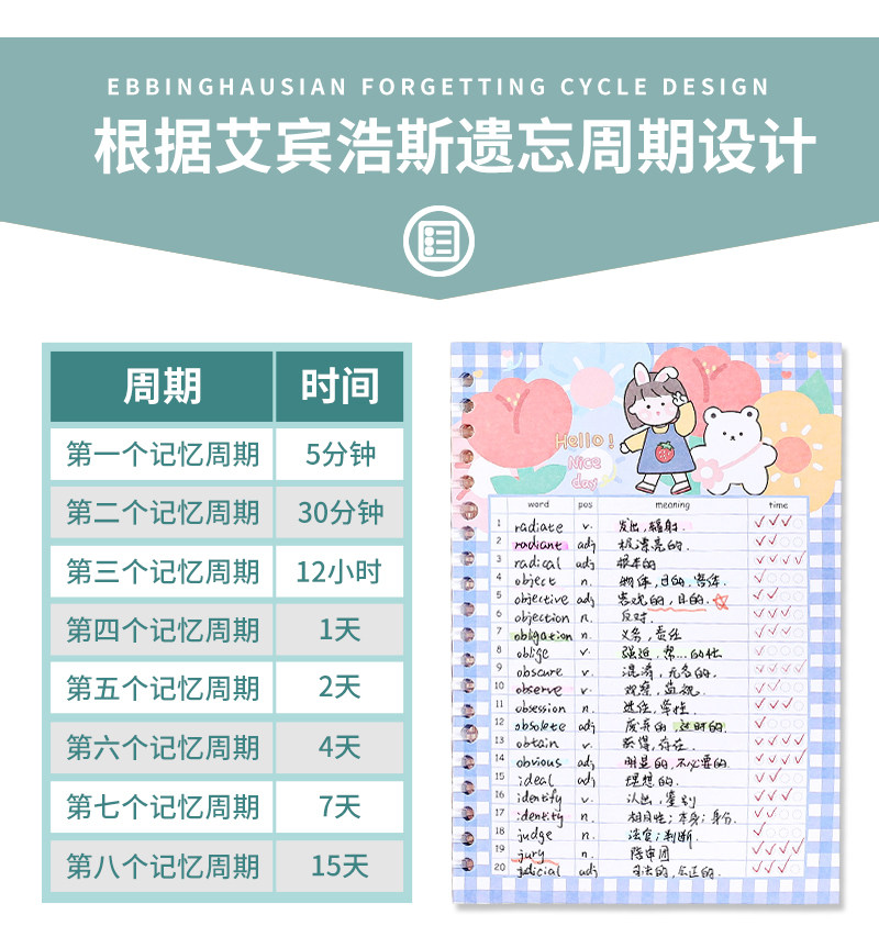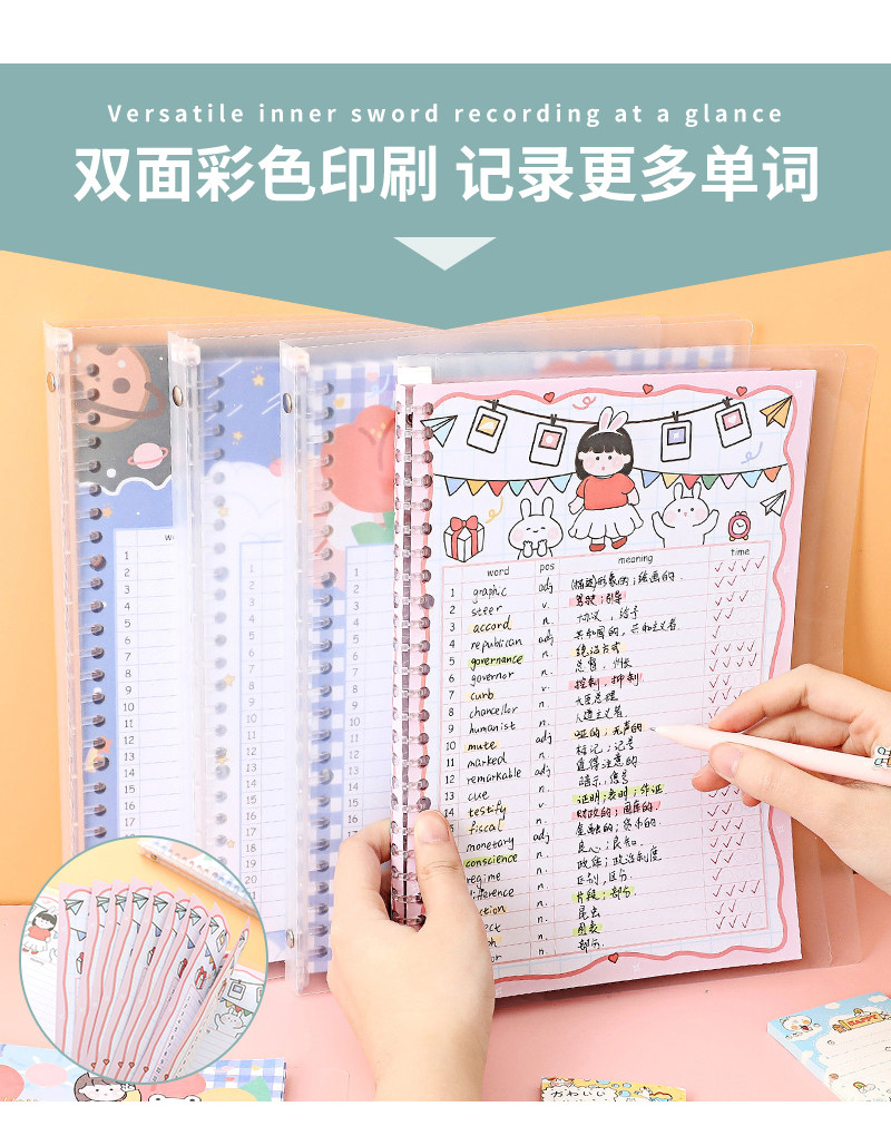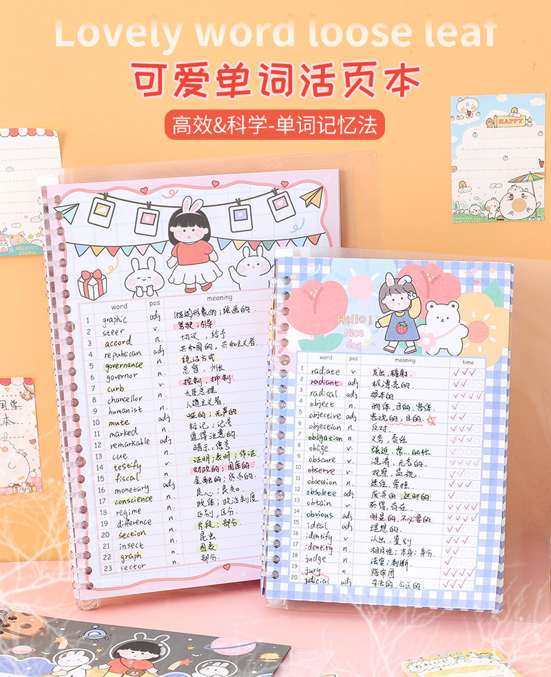 小槑同学 Обучающая портативная брендовая книга для школьников, милый съемный ноутбук, английский, отрывной лист, японские и корейские, подходит для студента