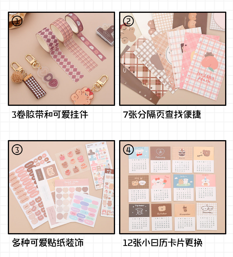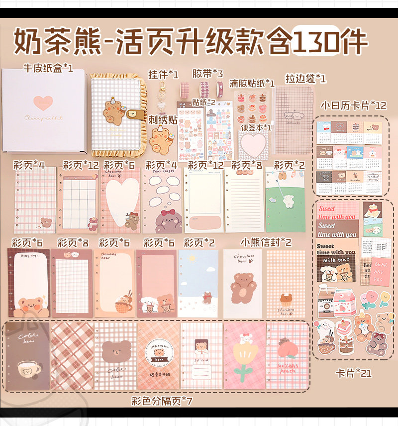 Подарочная коробка, милый комплект, карманный блокнот, ноутбук, брендовая японская книга, с медвежатами, отрывной лист, коллекция 2021, популярно в интернете, полный комплект
