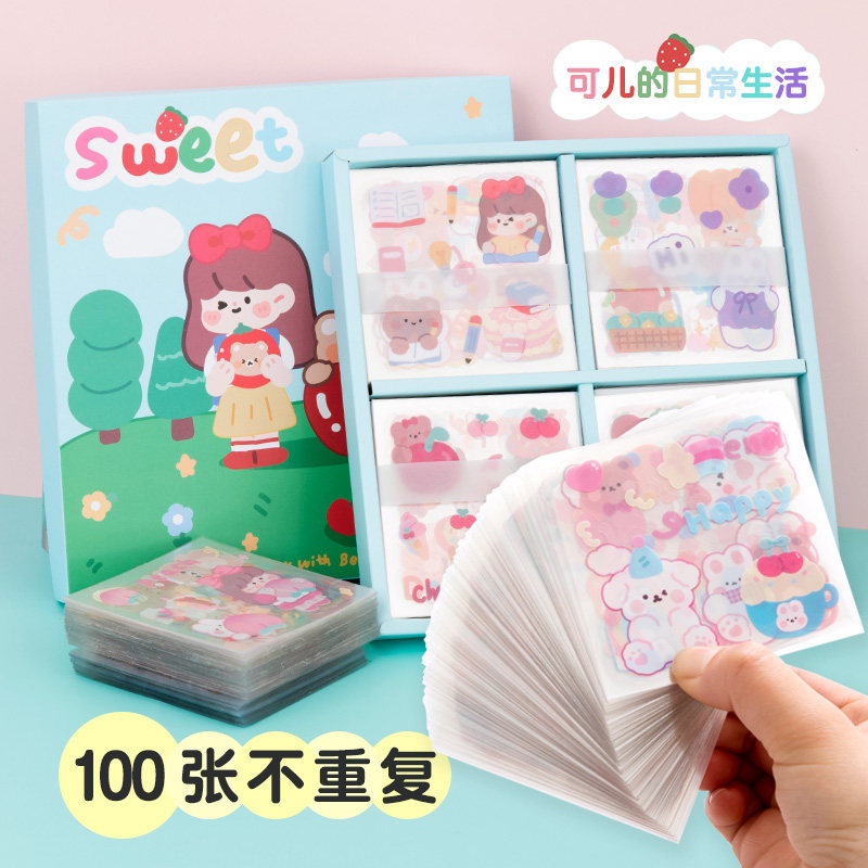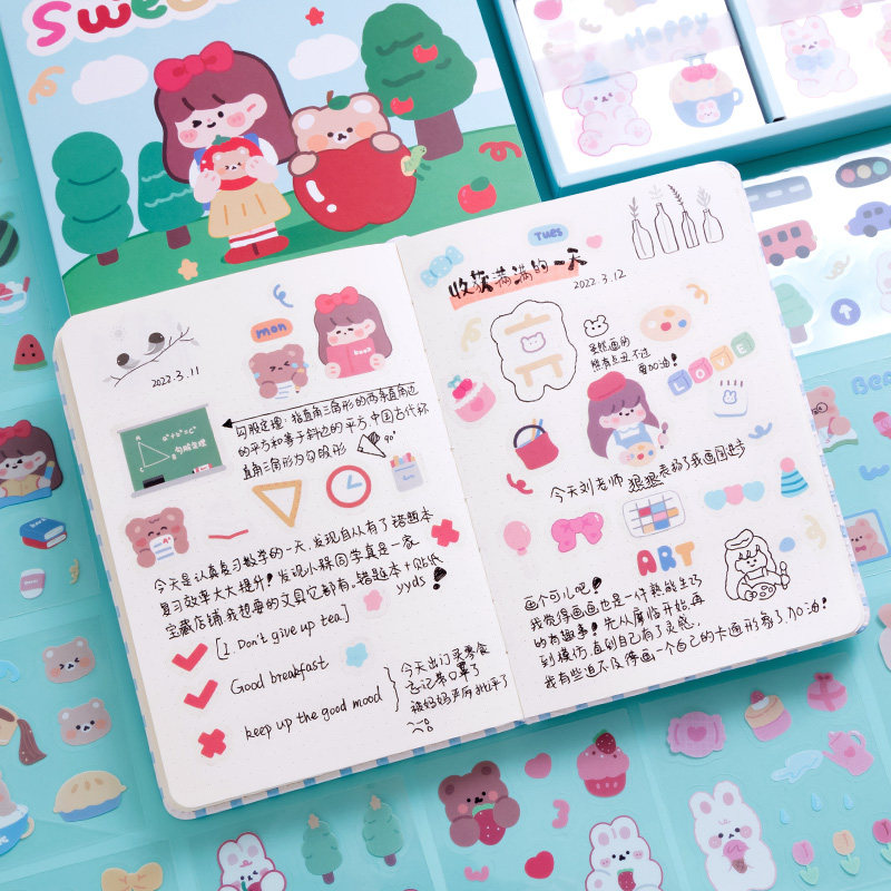 Наклейка, детский прозрачный водонепроницаемый комплект из ПВХ, брендовые мультяшные милые наклейки, на каждый день, планировщик, популярно в интернете