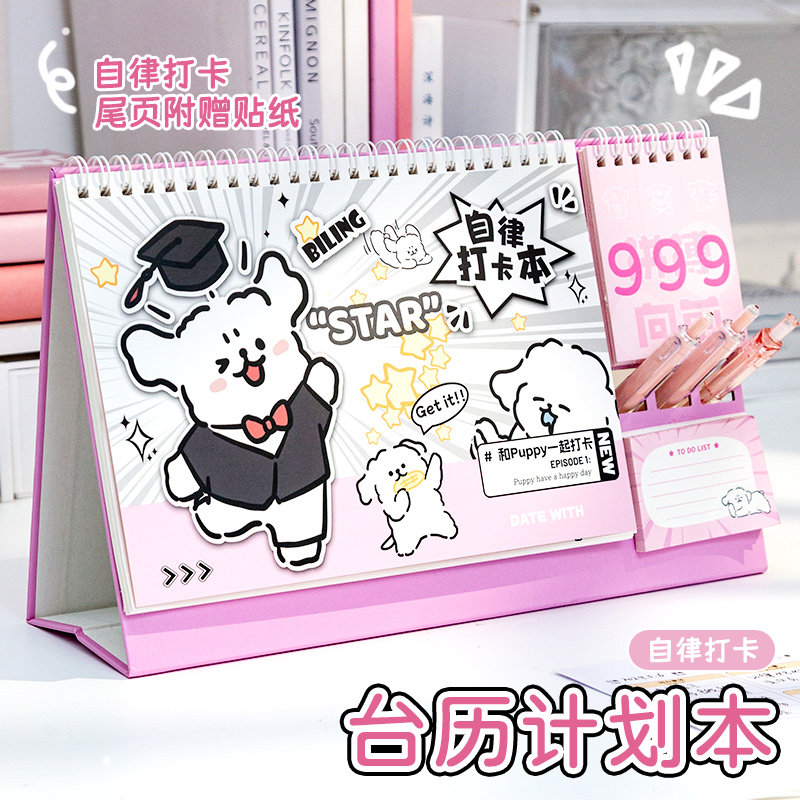 Happy Puppy Daily Plan 2024 Летняя неделя каникул План Todolist Time Management Learning Learning Self-Discipline Книга Книга Симпатичная записная книжка Под нот-нот-обратное расчет Календарь