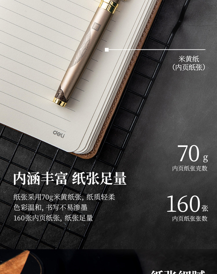 Deli -Noodle Notebook Simple Fashion Soft Leather Cteend Student Jiary Page 160 Книга записей офисной конференции