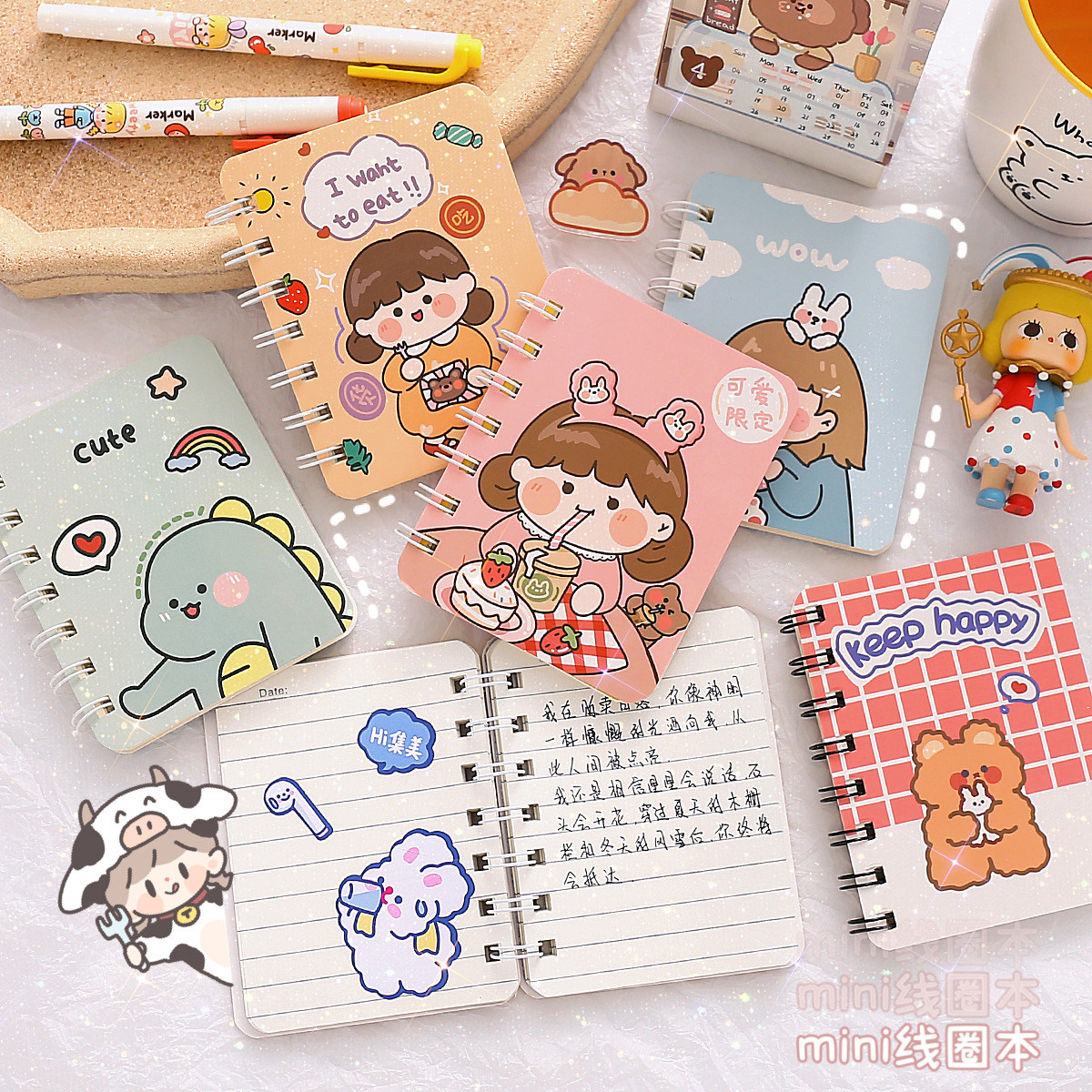 Милый свежий портативный карманный блокнот для школьников и студентов, маленький ноутбук, книга, Южная Корея, увеличенная толщина