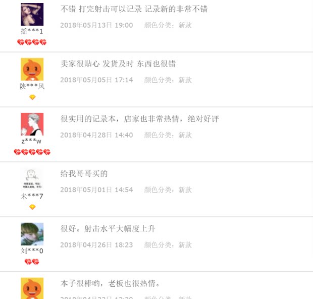 Это книга рекордов, которая очень подходит для стрелков. Он может записывать результаты после каждой тренировки и опыт стрельбы, что очень помогает улучшить результаты стрельбы.Оказывается, ссылку случайно удалили и разместили заново. Это практичный небольшой продукт, получивший высокую оценку.