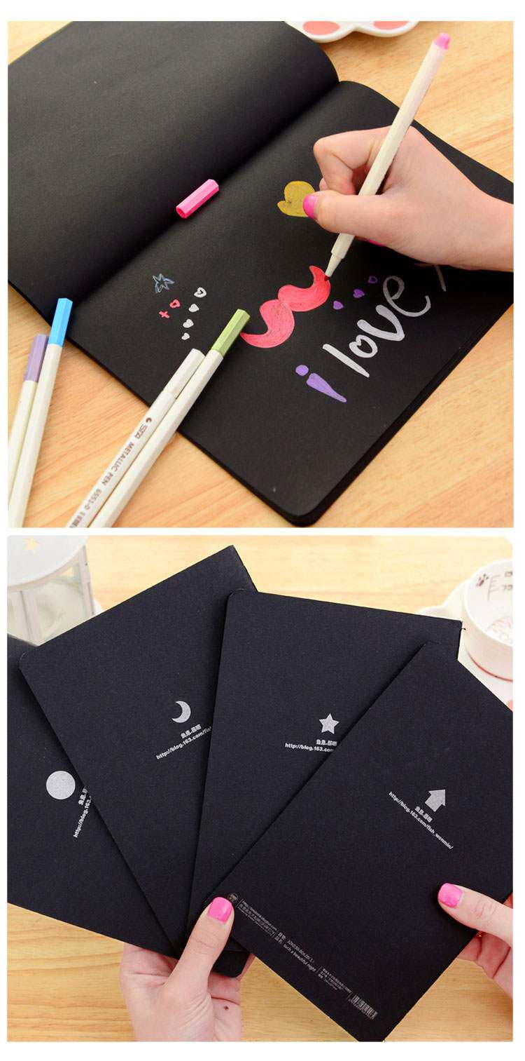 Ноутбук, блокнот, книга с картинками, черная цветная бумага, японские и корейские, граффити, ручная роспись