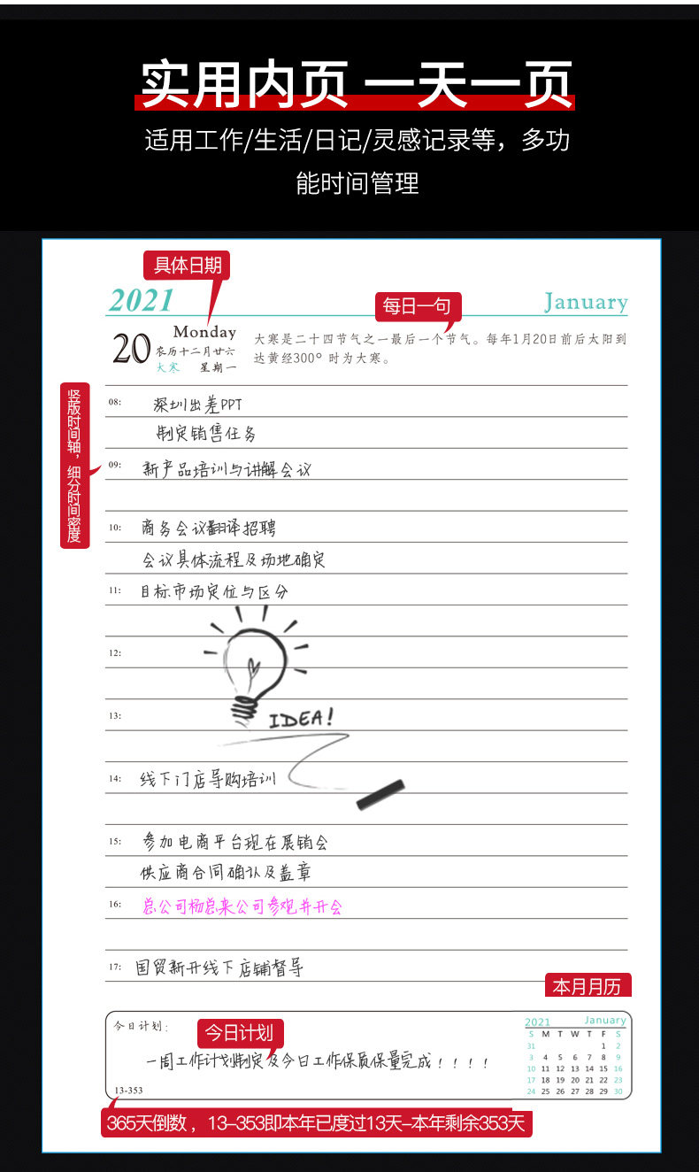 Календарь, ноутбук, книга, блокнот, 2024 года, 365 дней, бизнес-версия