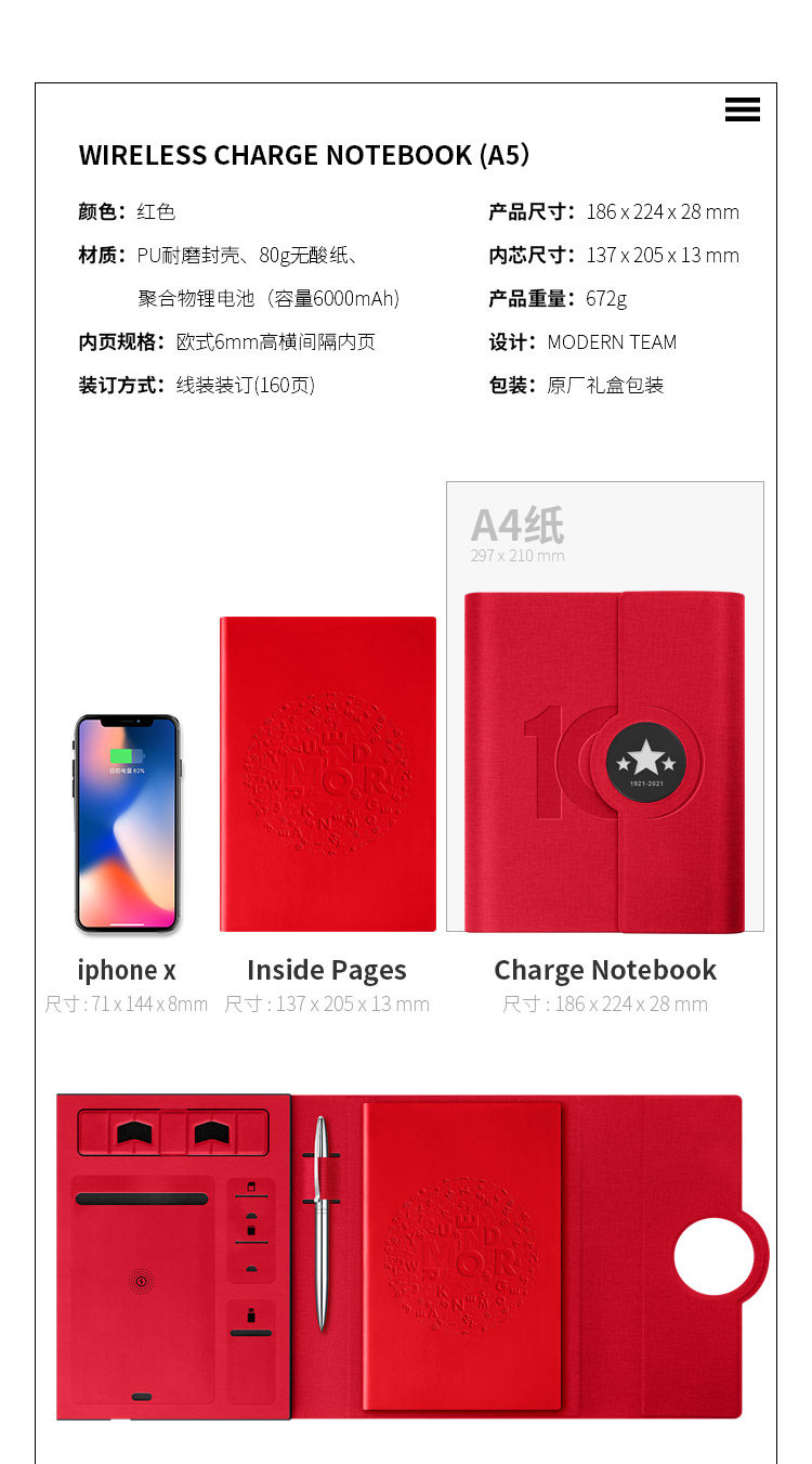 Универсальный блокнот с зарядкой, индивидуальный ноутбук, книга, Германия, бизнес-версия, отрывной лист, делается под заказ