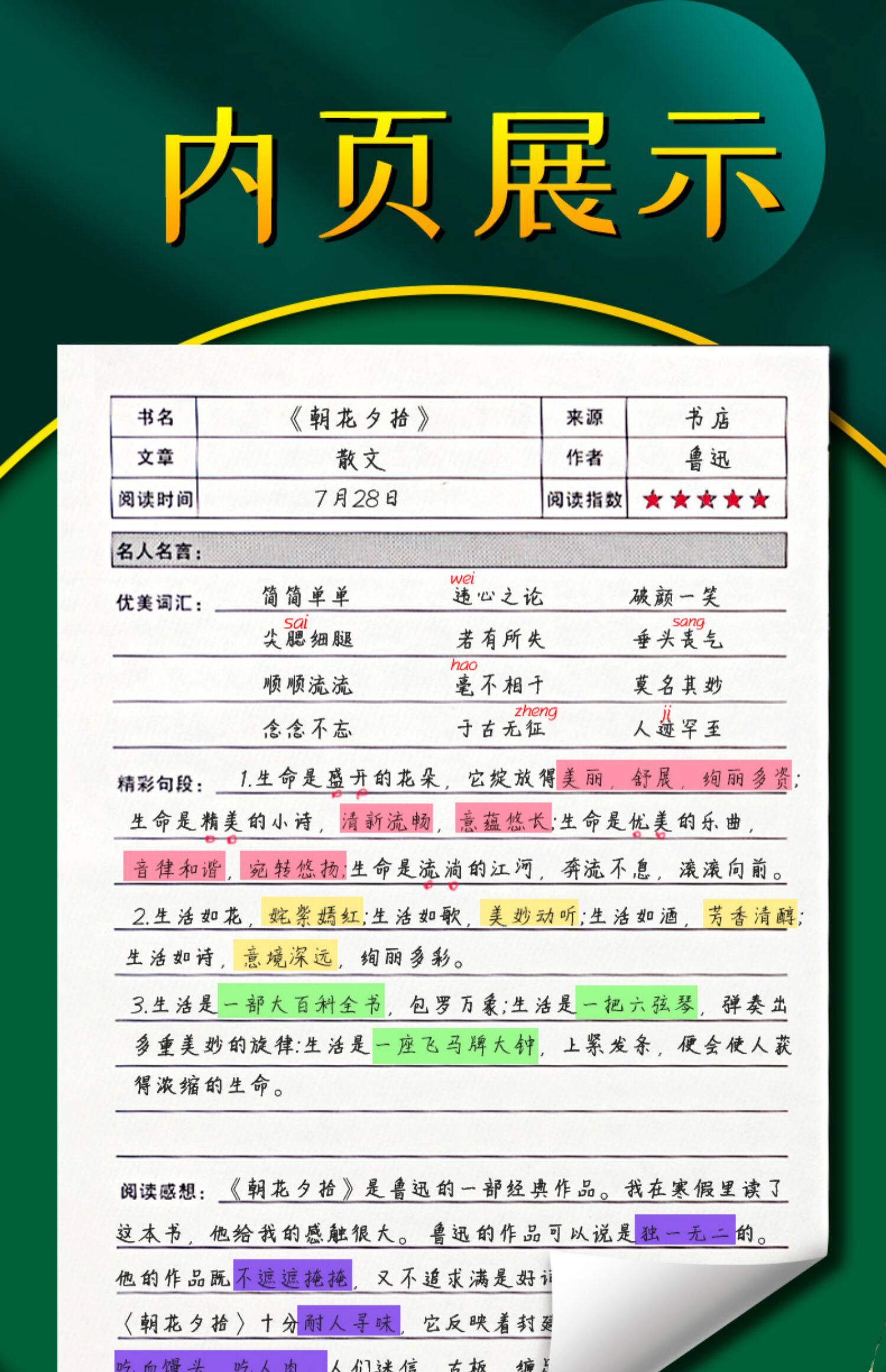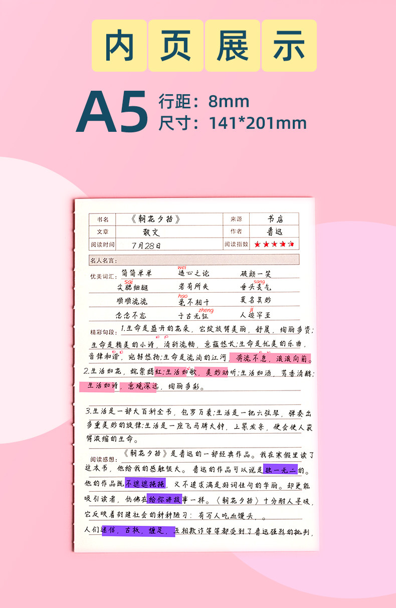 Чтение ноутбука и выдержка A5 Хорошие слова Хорошее предложение Стандартное ноутбук простые выдержки для студентов колледжа после прочтения