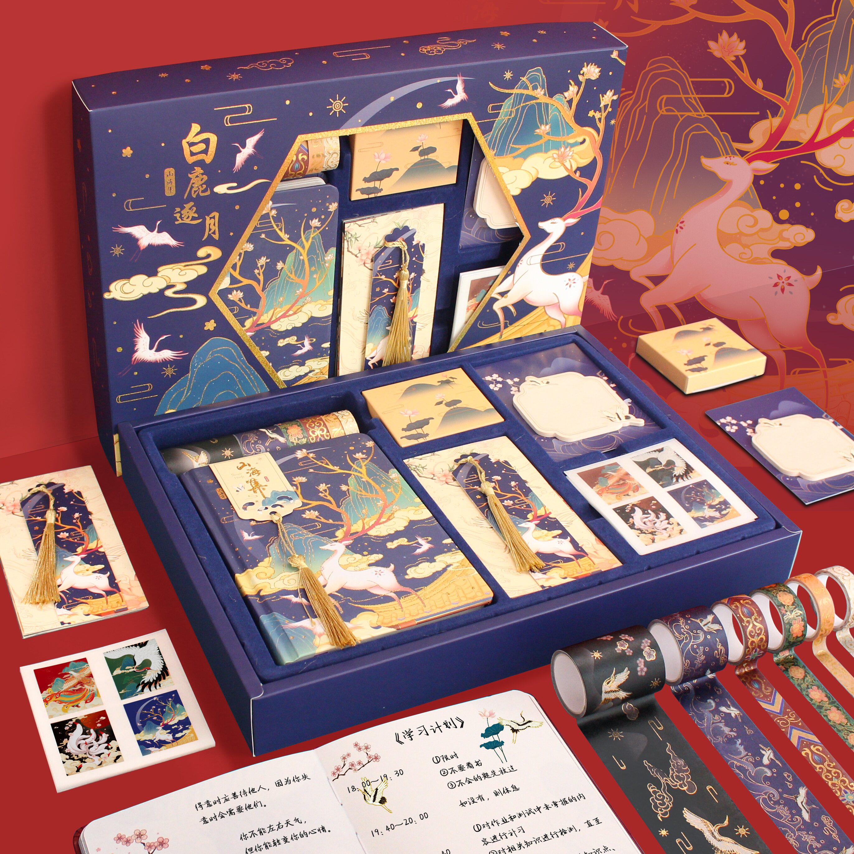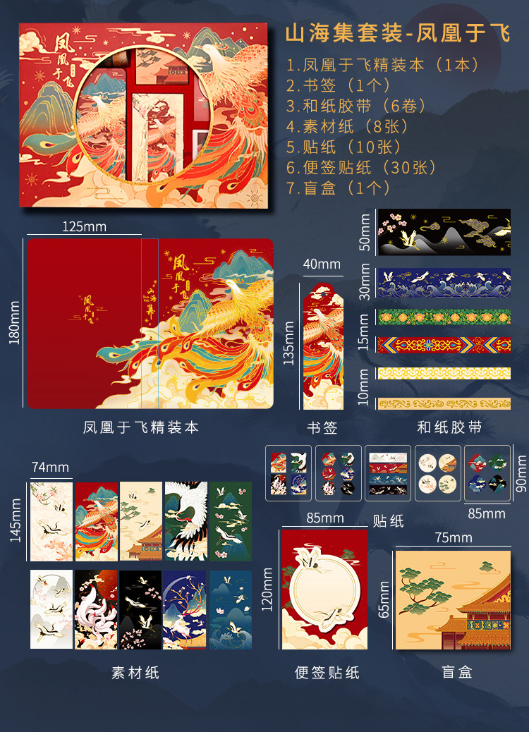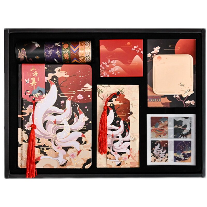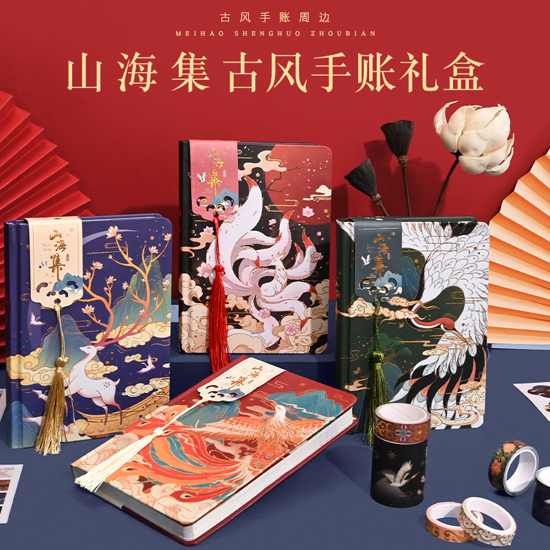 Комплект в стиле древности, китайская подарочная коробка, ноутбук, книга, наклейка, бумажная лента, карманный блокнот, китайский стиль