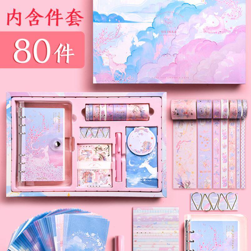 Милая подарочная коробка, комплект, набор, лента, наклейка, ноутбук